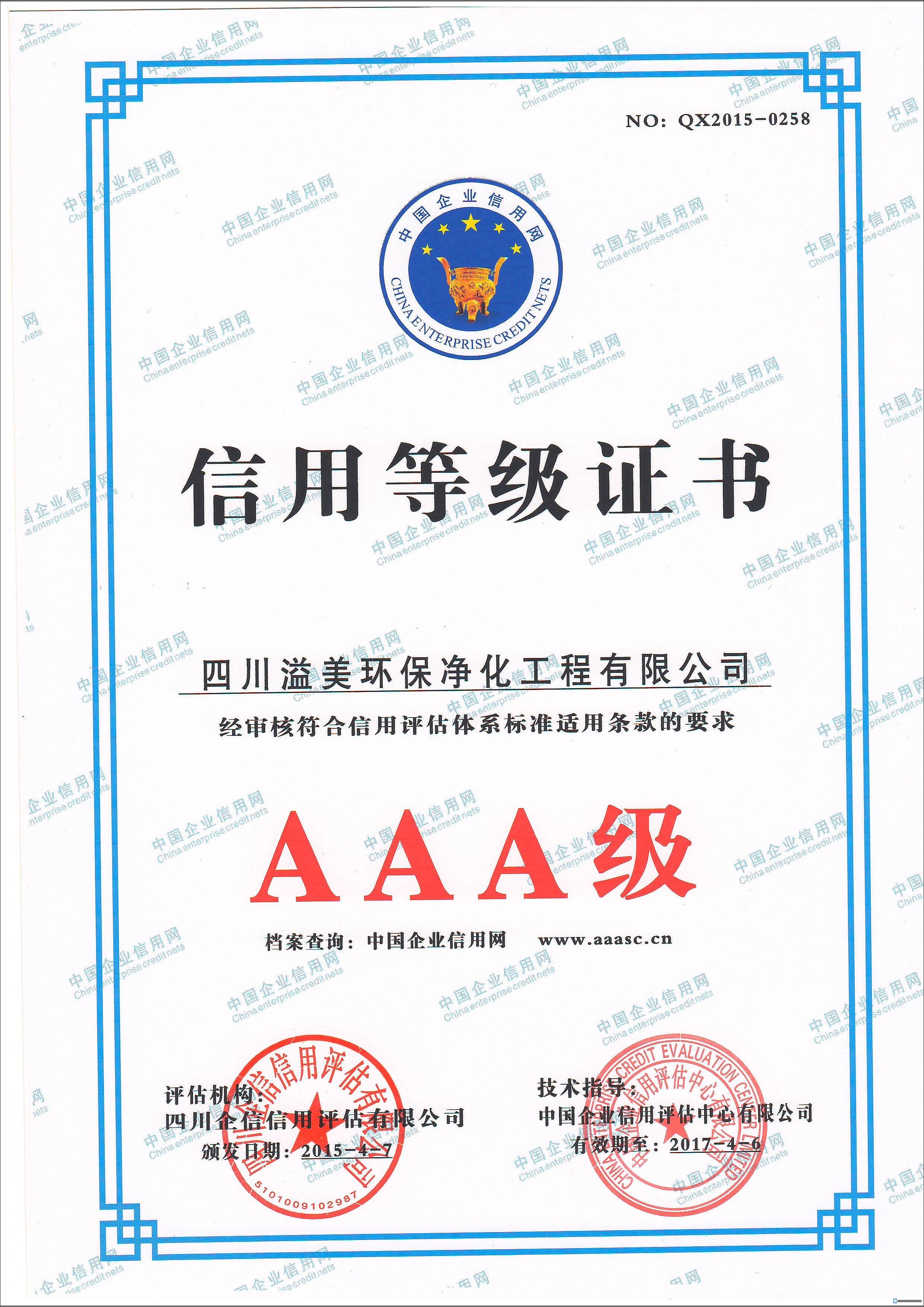 2015年4月,中国企业信用网授予我公司“AAA”信用等级证书